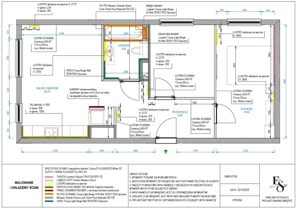 Dokumentacja techniczna Twoich wnętrz na rzutach 2D ułatwia współpracę z każdym wykonawcą. Dzięki specyfikacjom materiałów i dokładnym wymiarom, unikniesz problemów podczas realizacji projektu. Cały proces staje się szybki, płynny i bezbłędny. Krok po kroku będziesz w stanie wykonać każdy element oraz każde pomieszczenie: łazienkę, kuchnię, podłogi, sufity. W zależności od projektu i jego skomplikowania są to projekty: zmian ścian, projekty zabudowy sufitów, projekty ułożenia podłóg, widoki ścian dla glazurnika, specyfikacje materiałów ściennych dla malarzy.